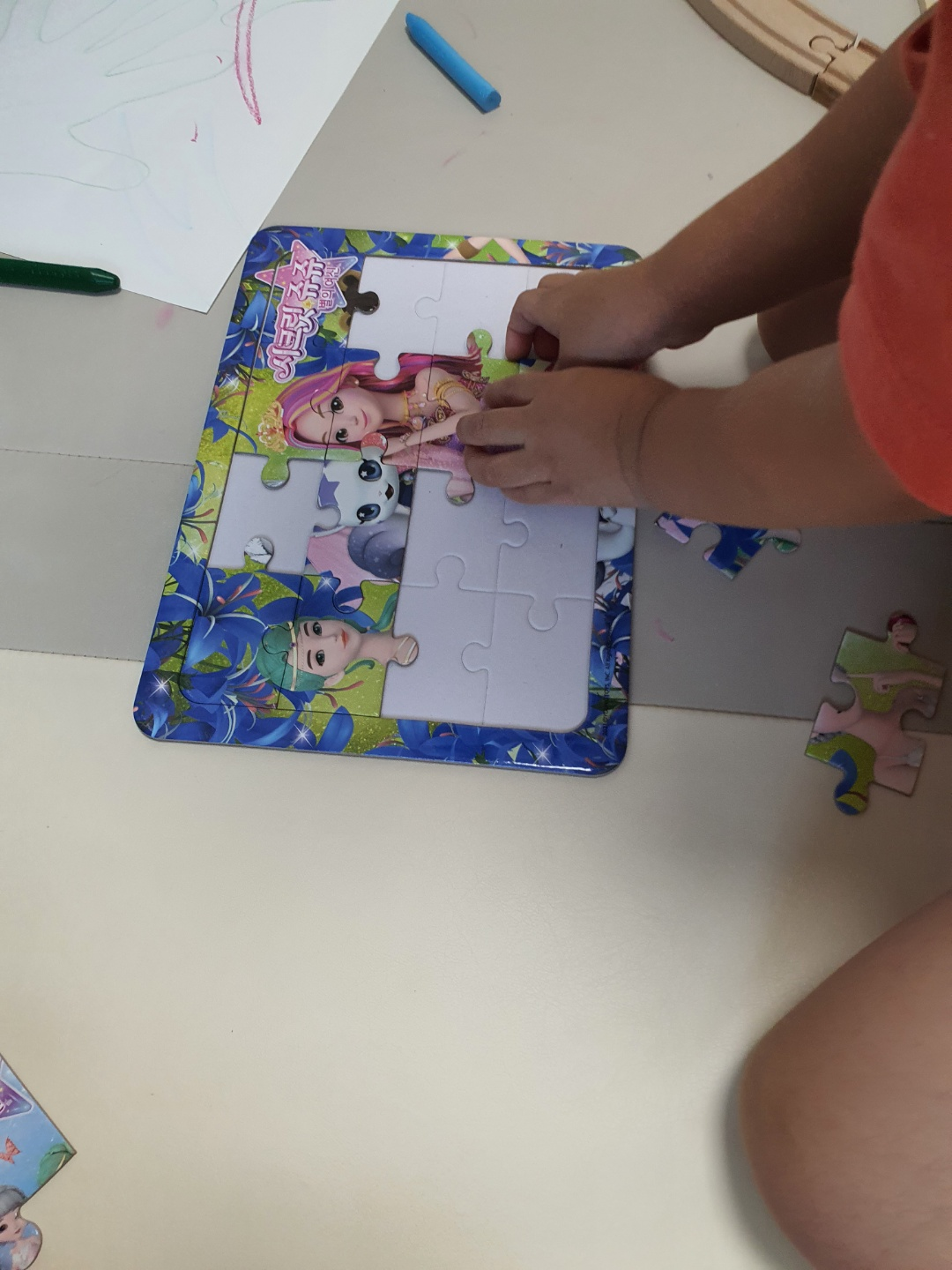 안되면 가끔 화도 냈지만 집중해서 열심히 했습니다. 좋아하는 캐릭터 퍼즐이니 더 열심히 하는 듯 보였습니다.