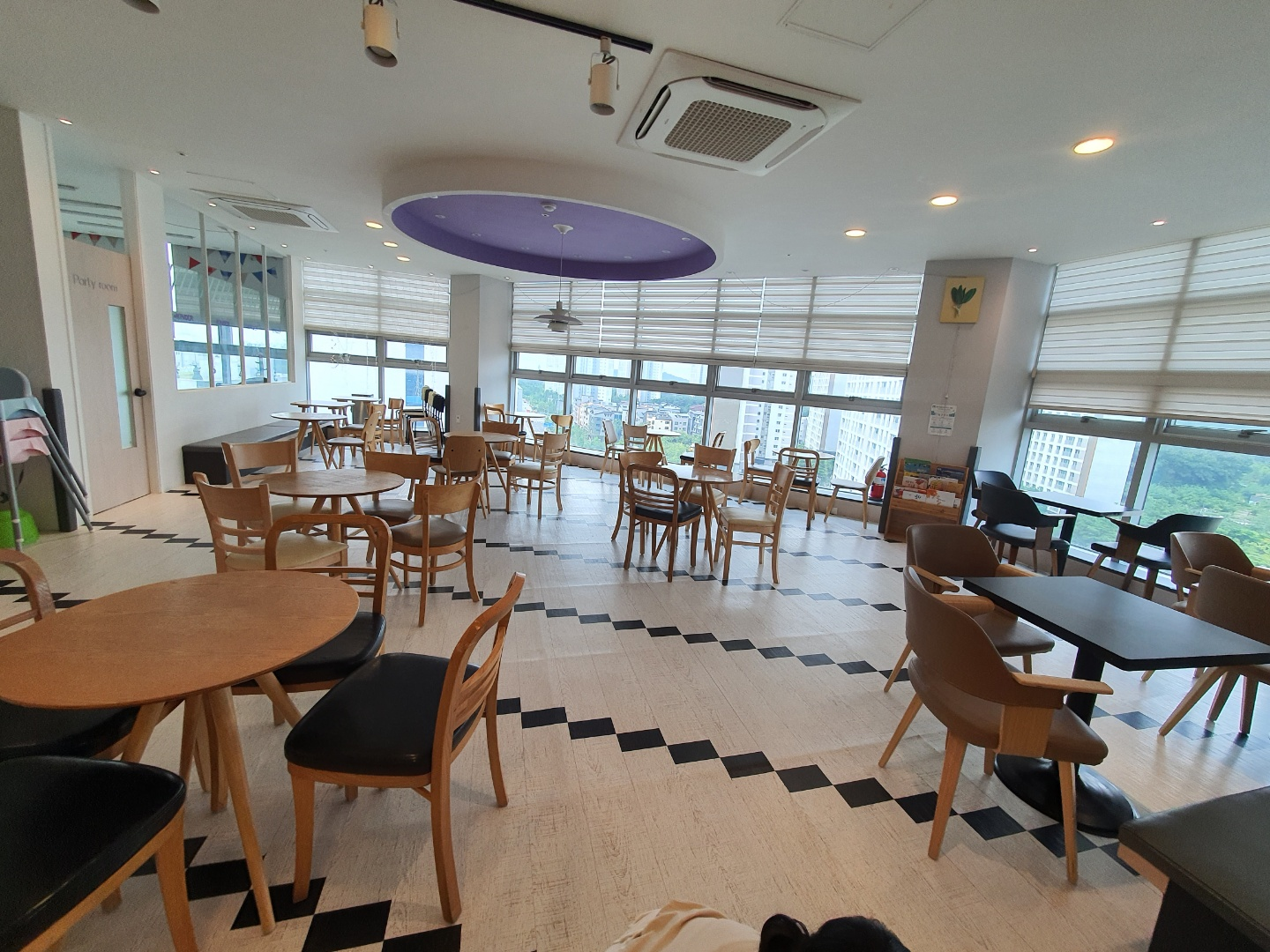 결제를 하고 놀이시설과 카페를 이용합니다. 카페 테이블이 널찍하니 있습니다.