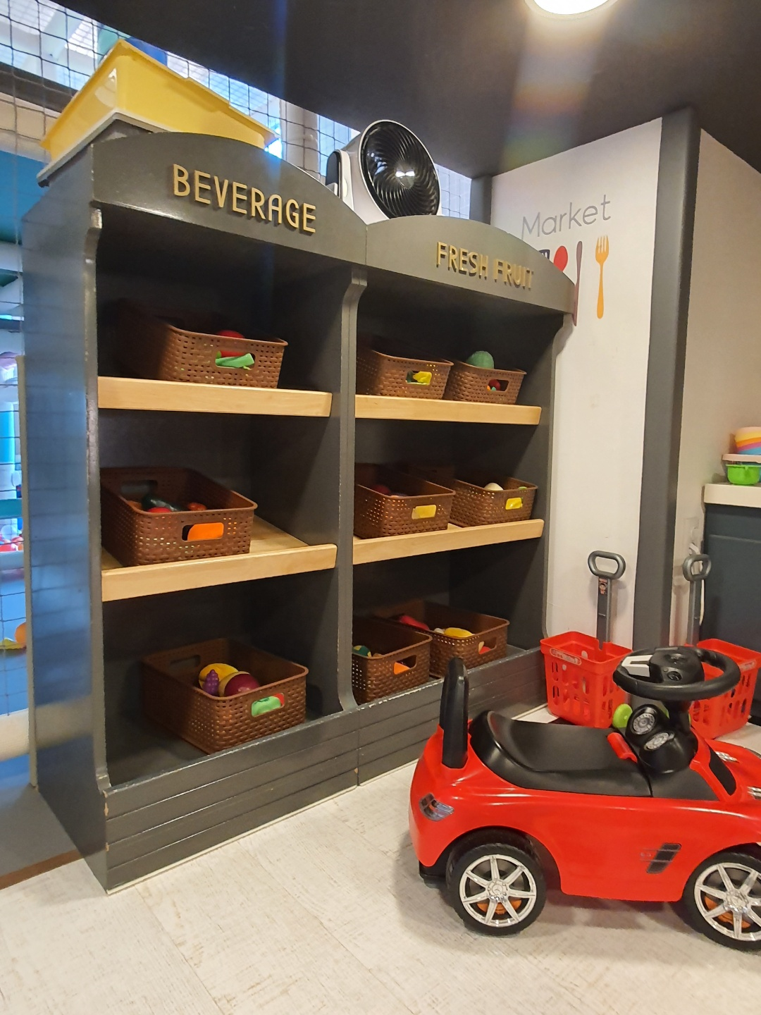 2층으로 올라가면 자동차 놀이, 공구놀이, 블럭 놀이등을 할 수 있게 되어 있어요. 도구를 여러가지 방법으로 사용하며 응용력과 창의력 발달에 도움이 됩니다.